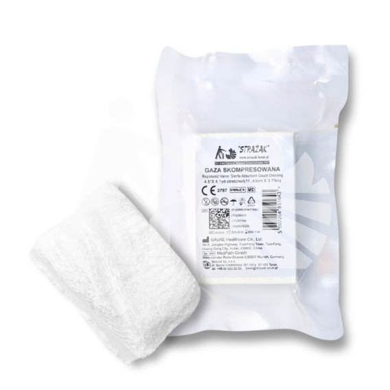 • Wymiar skompresowanej gazy: 5 × 7,5 × 1 cm