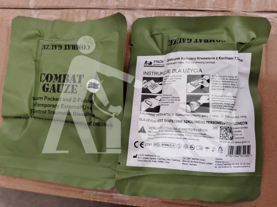 Kaolinowy opatrunek hemostatyczny 7,5cm x 370cm X-ray