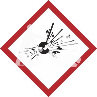 Czerwony romb z czarnym symbolem eksplodującej bomby. Oznacza substancje i mieszaniny, które mogą eksplodować pod wpływem ciepła, płomienia, tarcia, uderzenia lub innych czynników zewnętrznych. Symbol wyraźnie wskazuje na niebezpieczeństwo gwałtownego wybuchu.